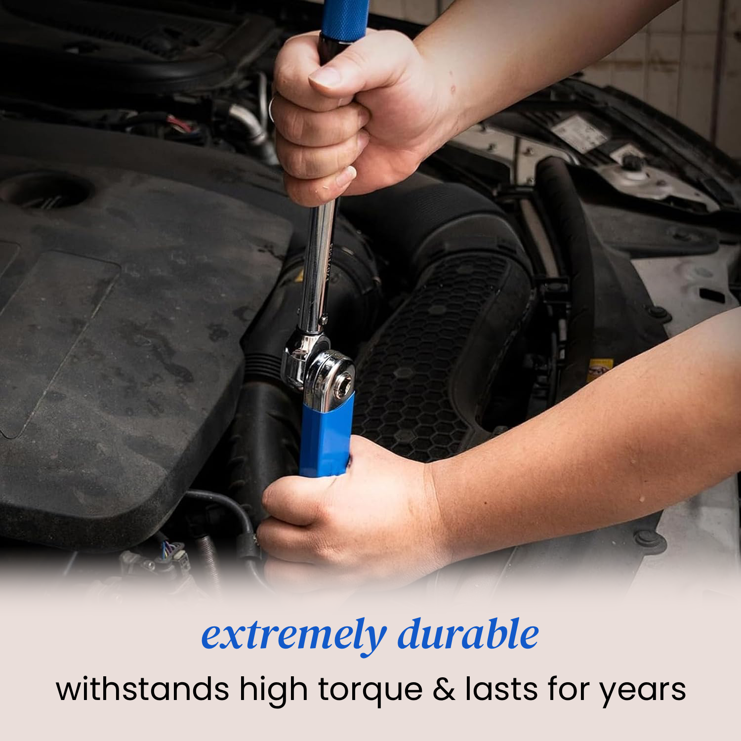 With SwiftWrench’s extended reach, you keep your hands safely out of tight zones while still applying full torque, letting you tighten or break loose stubborn bolts smoothly.